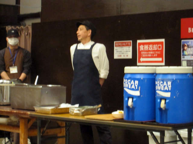夜は久しぶりにスキー場レストランでの食事。目黒シェフ特製のカツカレーが目の前に並び、子どもたちの目はキラキラ!スキーはできませんでしたが、昼間体育館でたくさん体を動かしたので、みんなもりもり食べていました。帰りには自分たちで作ったスノーキャンドルがお出迎え。冬の夜の幻想的な雰囲気を味わい心に残る時間となったと思います。おやすみ前に、OHPを使った「八郎」のお話を(少々眠い目をこすりながら)しっとりと聞き、そのまま「おやすみなさ~い。」  ― ③へ続く ―