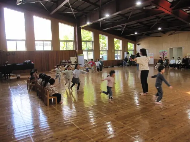 10月16日(木)17日(金)の2日間、風クラスと大地クラスの保育参加・懇談日に合わせて、理事長所蔵の彫刻作品展示会を開催しました。保育参加では親子一緒にリズム遊びを体験し、その後高村光太郎の作品2点と中村晋也の作品1点他を、本郷新記念札幌彫刻美術館の吉崎館長に解説をいただきながら保護者の皆様に鑑賞していただきました。本物体験を大切にしている本園の特徴を生かした、スポーツの秋と芸術の秋を同時に味わう贅沢なひと時となりました。