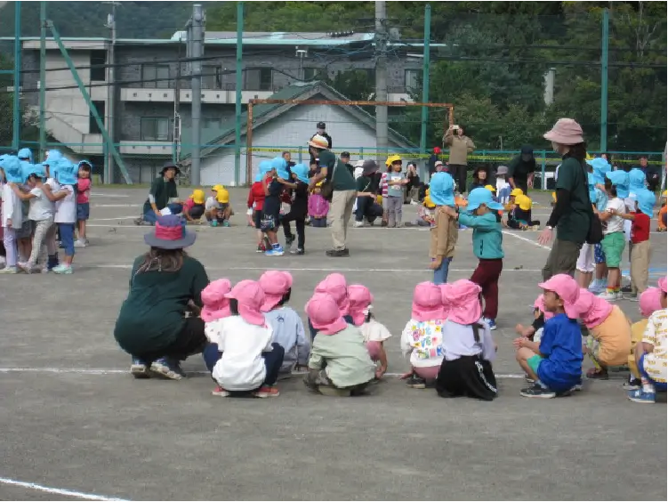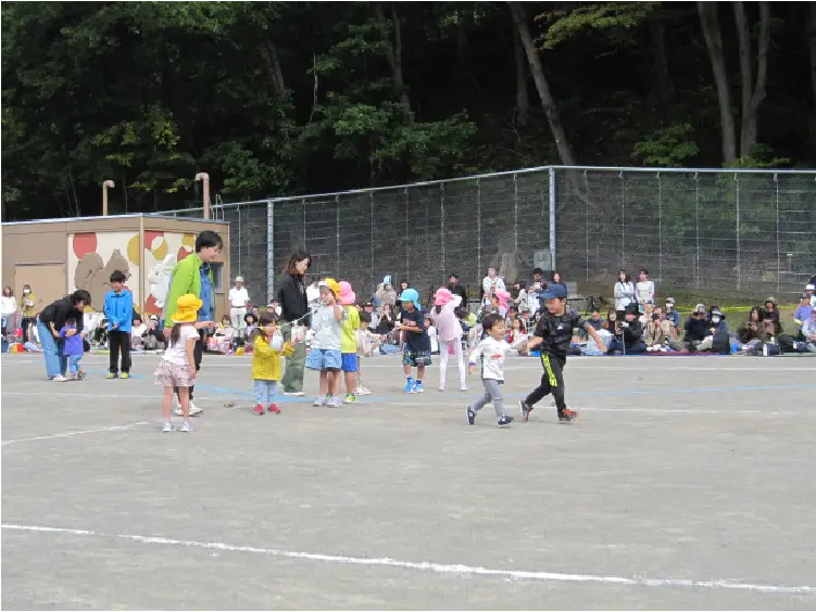 少々時間が経ってしまいましたが、9月20日(土)最高気温23度くもり、という絶好の運動会日和の中、第45回運動会を実施しました。満3歳児や年少赤組さんは初めての行事に少しドキドキしながら、年中緑組は自信をもって、年長青組さんは競技だけでなくアナウンスや用具係も務めながら、運動することを楽しんでいました。ご来賓の皆様、保護者の皆様、地域関係者の皆様、温かいご声援ありがとうございました。