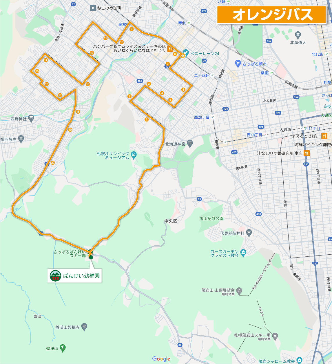 園児の登園・降園のために、現在、園バスを3方面に次の経路で運行しています。